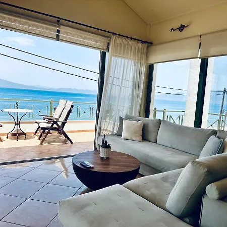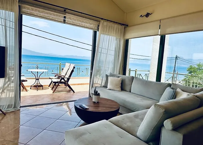 The spacious 81 m² Α Οροφου Σπιτι Arkitsa apartment features a terrace which opens out onto the sea.